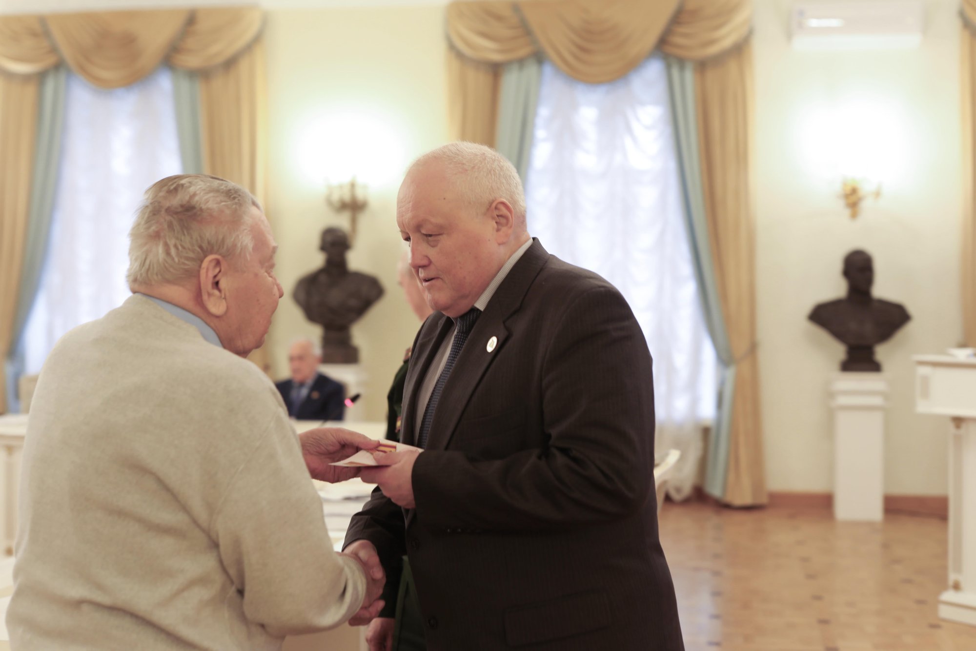 - генерал-майору КАМЫШАНОВУ Ю.Ф.; - полковнику СТАРИКОВУ А.А. - Первый заместитель Председателя Совета ЧИСТЯКОВ А.В.- общественную награду Московского Дома ветеранов – медаль «За заботу о ветеранах войн» контр-адмиралу ДЬЯКОНОВУ А.Г. – члену правления Клуба адмиралов, ветерану подразделений особого риска.