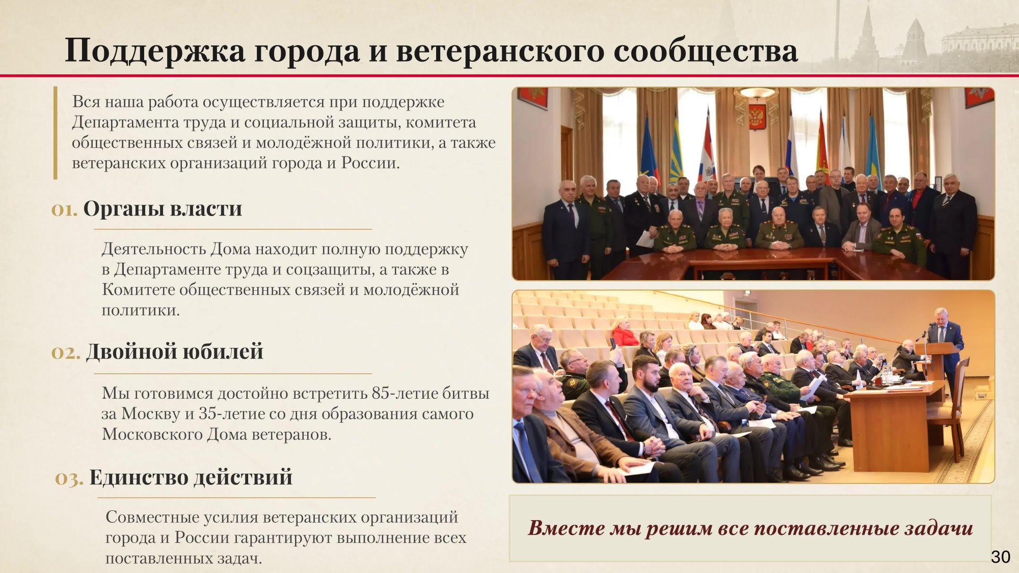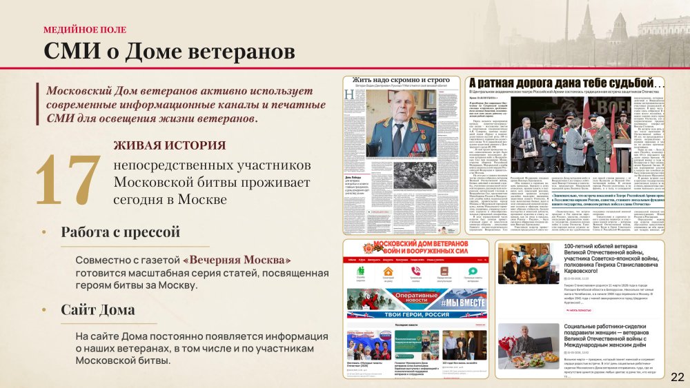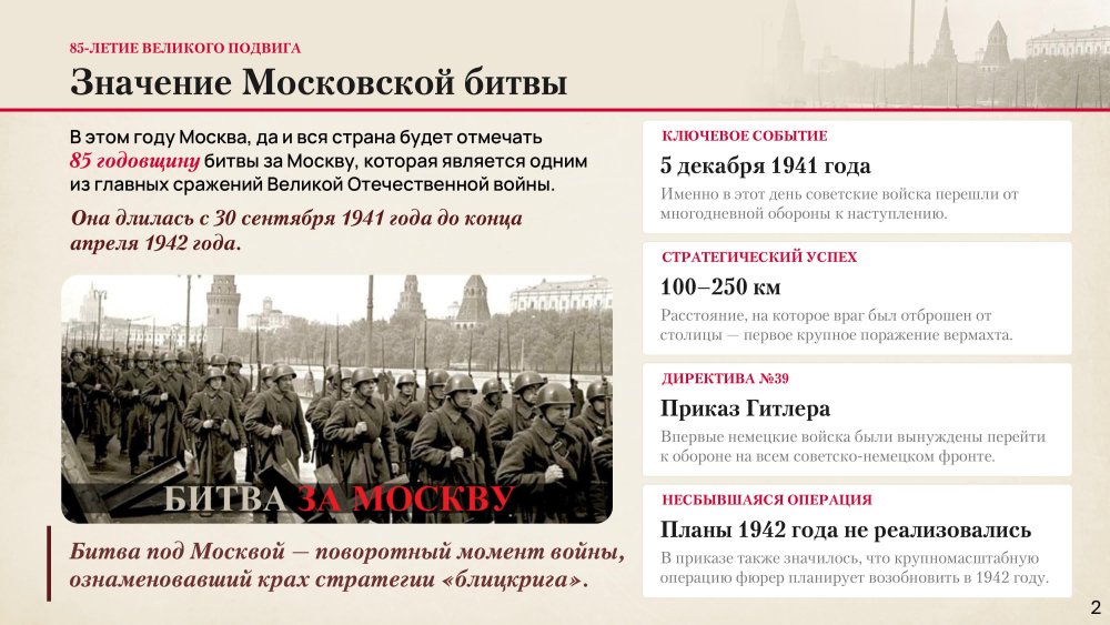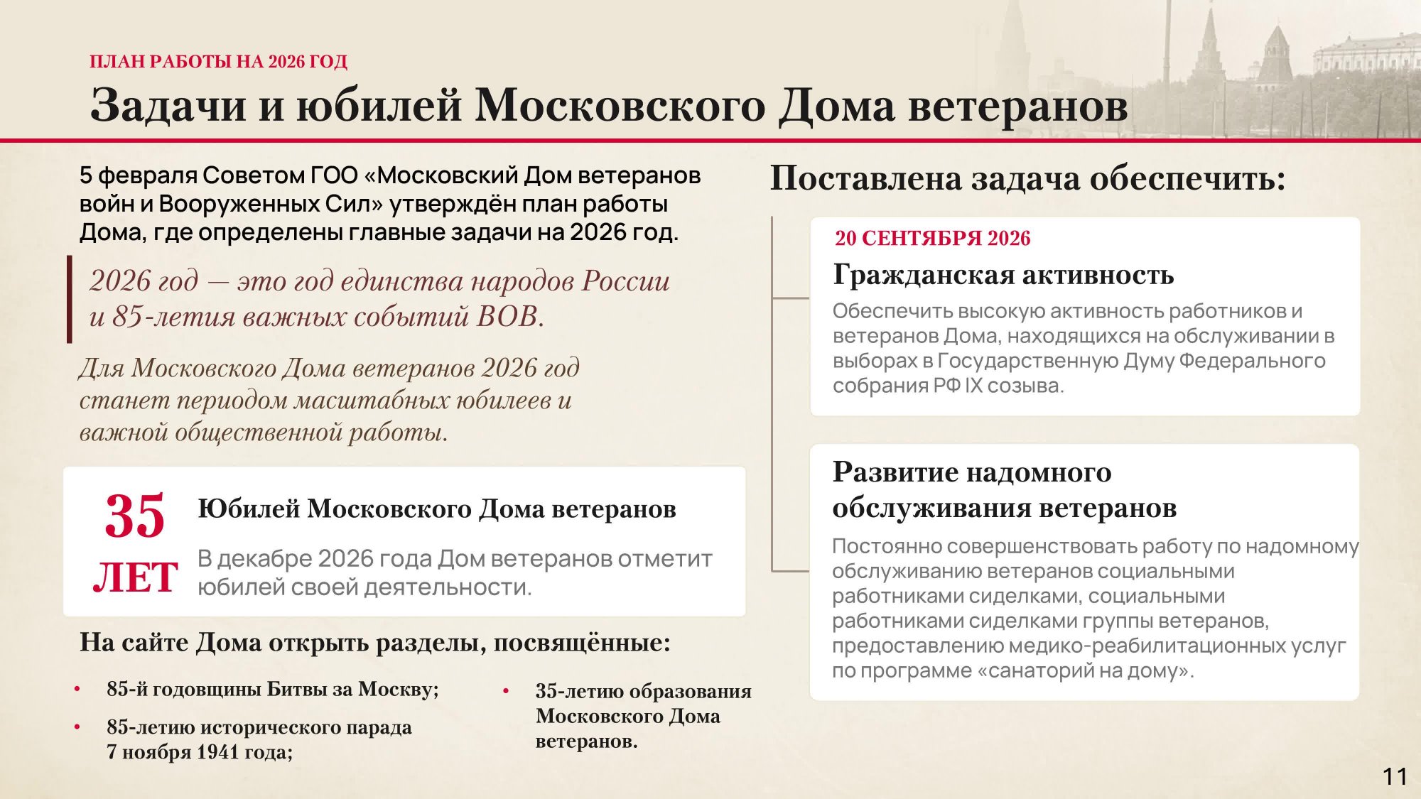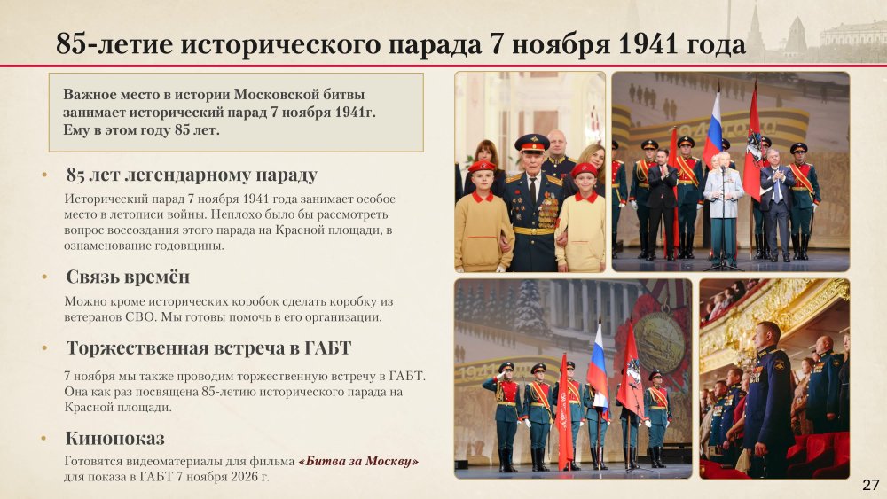 О выполнении Московским Домом ветеранов войн и Вооруженных Сил мероприятий, определенных Планом Правительства Москвы по организации празднования в городе Москве 85-й годовщины начала контрнаступления советских войск против немецко-фашистских войск в битве под Москвой