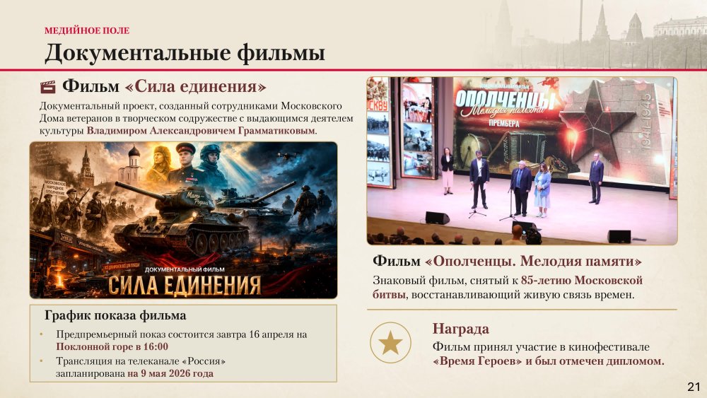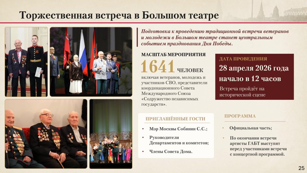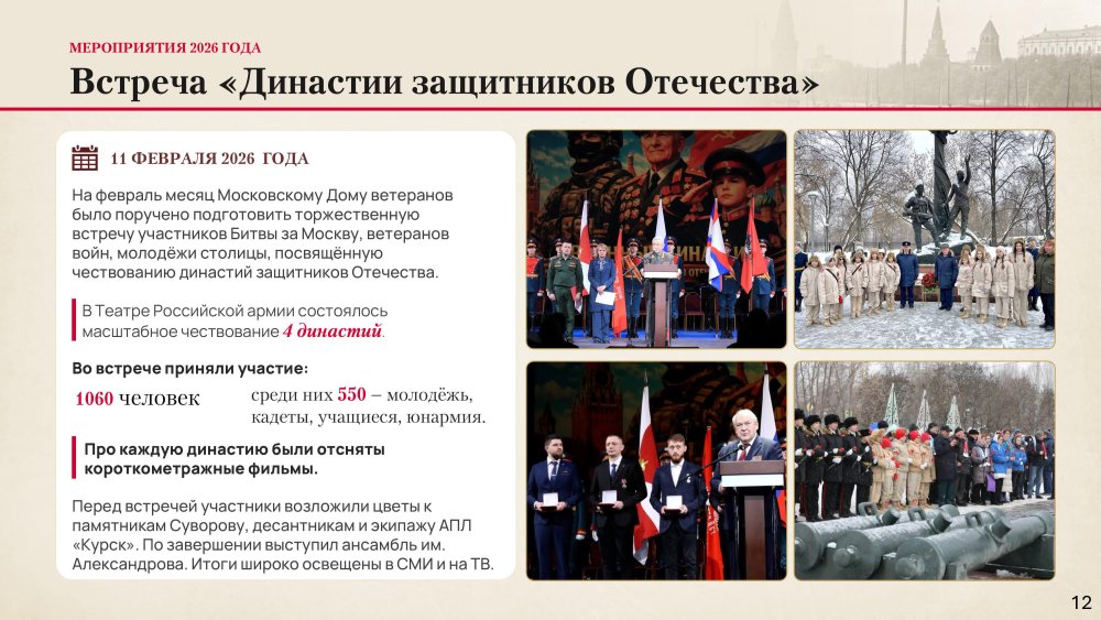 С такой Повесткой дня 15 апреля 2026 года в Центральном Доме Российской Армии прошло очередное заседание Совета Московского Дома ветеранов. В начале заседания были вручены награды:
